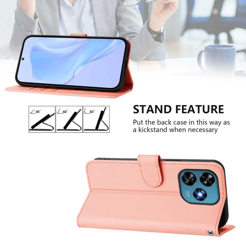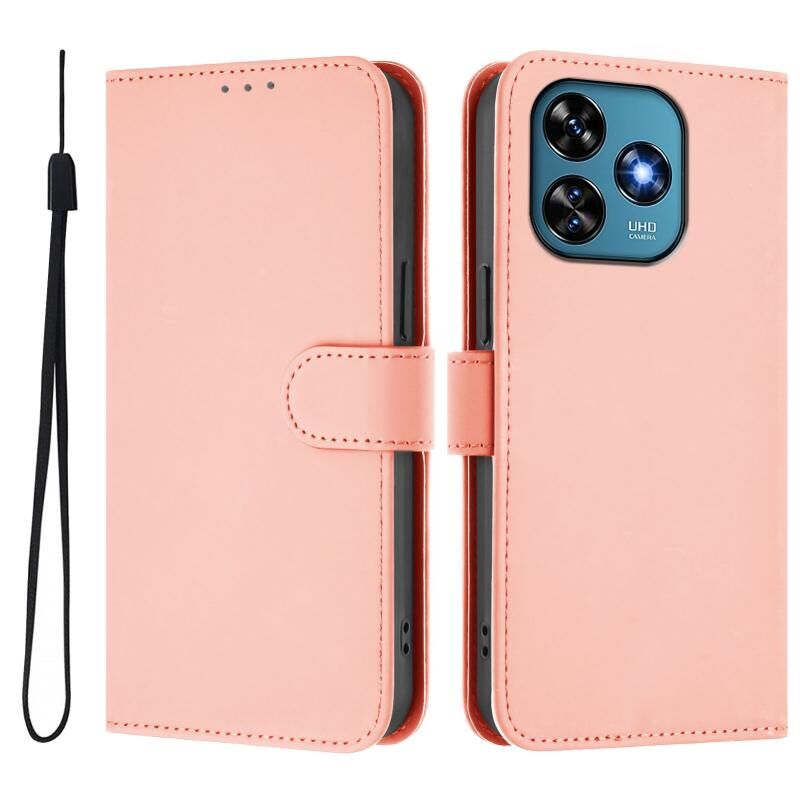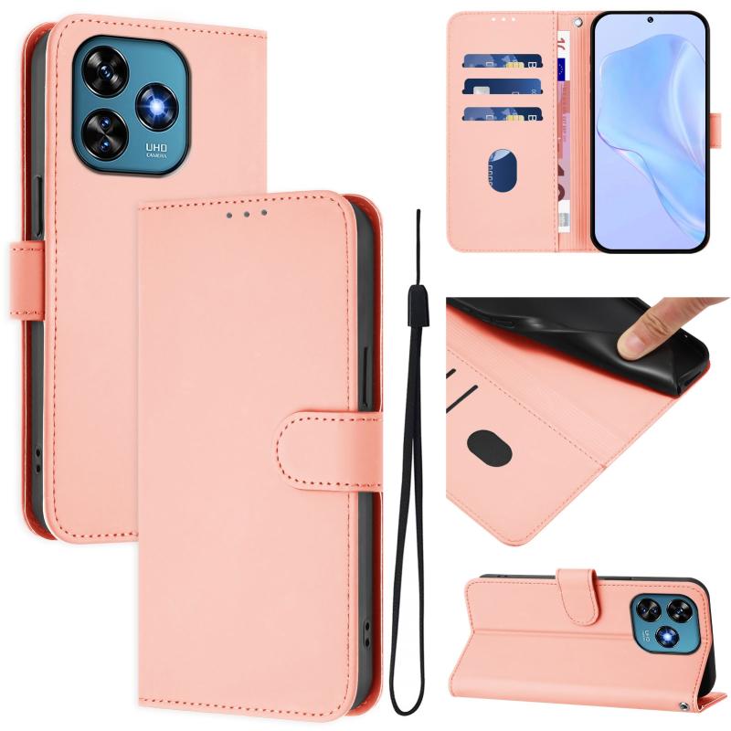 For Oukitel C51 Skin Feel Solid Color Leather Phone Case with Lanyard(Pink)