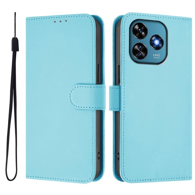 For Oukitel C51 Skin Feel Solid Color Leather Phone Case with Lanyard(Sky Blue)