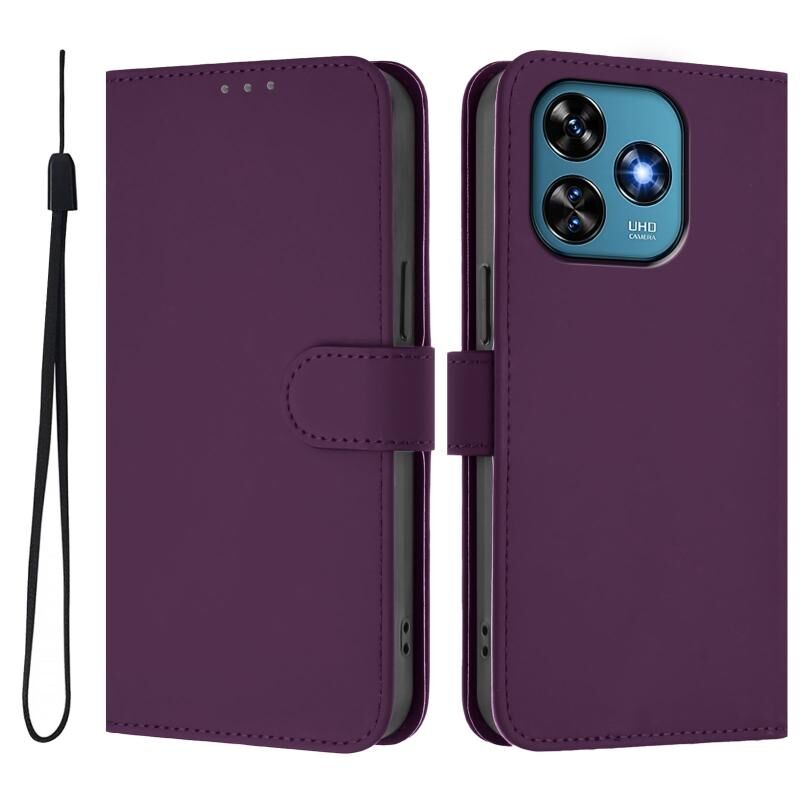 For Oukitel C51 Skin Feel Solid Color Leather Phone Case with Lanyard(Violet)