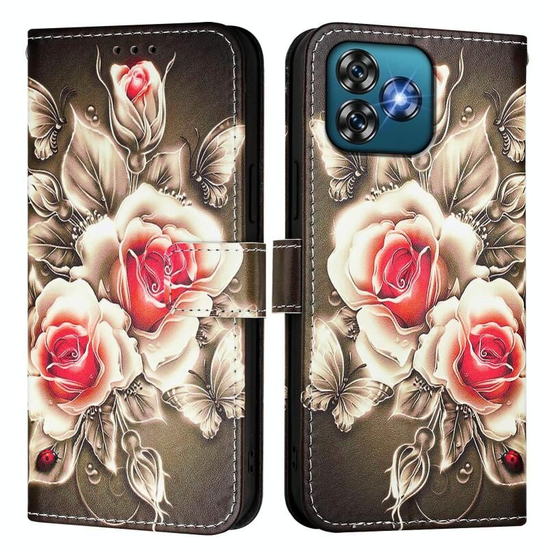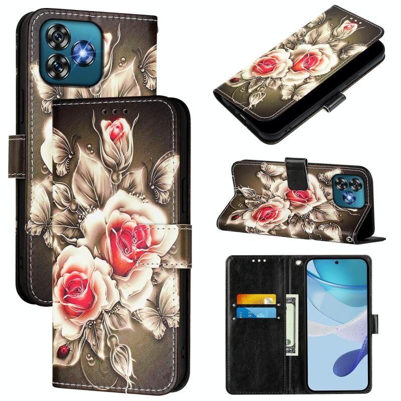 Θήκη τηλεφώνου Oukitel C53 με έγχρωμο σχέδιο, απλή ύφανση δέρματος (Τριαντάφυλλα σε μαύρο χρώμα)