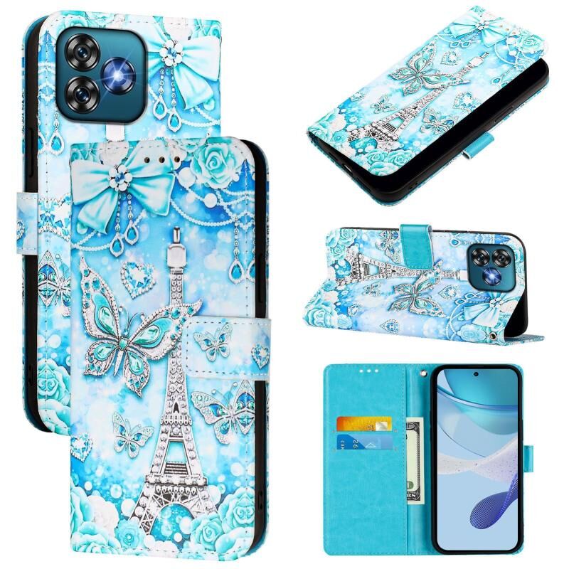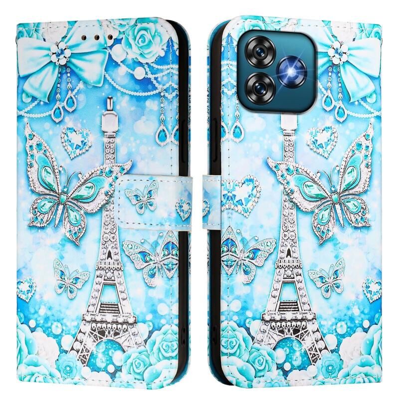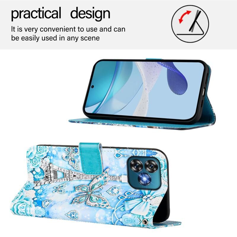 Θήκη τηλεφώνου Oukitel C53 με έγχρωμο σχέδιο, απλή ύφανση δέρματος (Πύργος Πεταλούδας)
