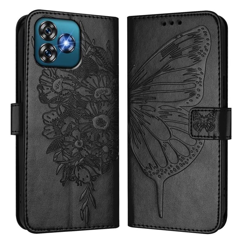 Για Oukitel C53 ανάγλυφη πεταλούδα δερμάτινη θήκη τηλεφώνου (μαύρο)