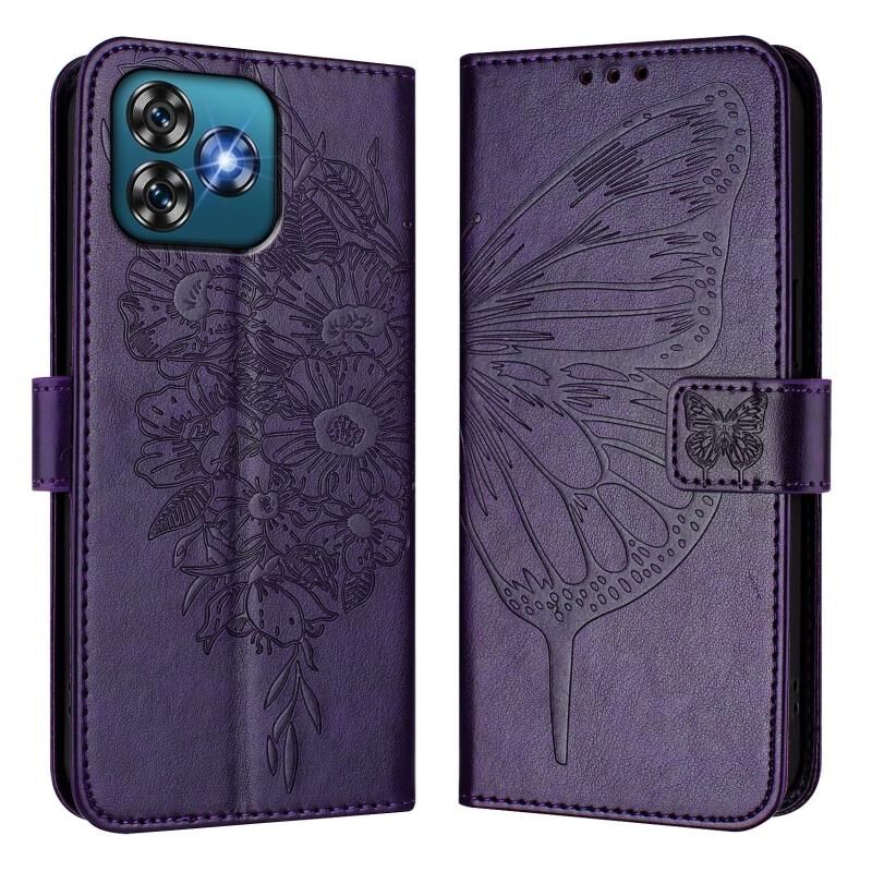 Για Oukitel C53 ανάγλυφη πεταλούδα δερμάτινη θήκη τηλεφώνου (σκούρο μοβ)