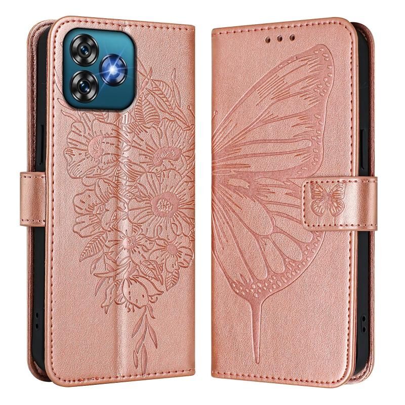 Για Oukitel C53 ανάγλυφη πεταλούδα δερμάτινη θήκη τηλεφώνου (Rose Gold)