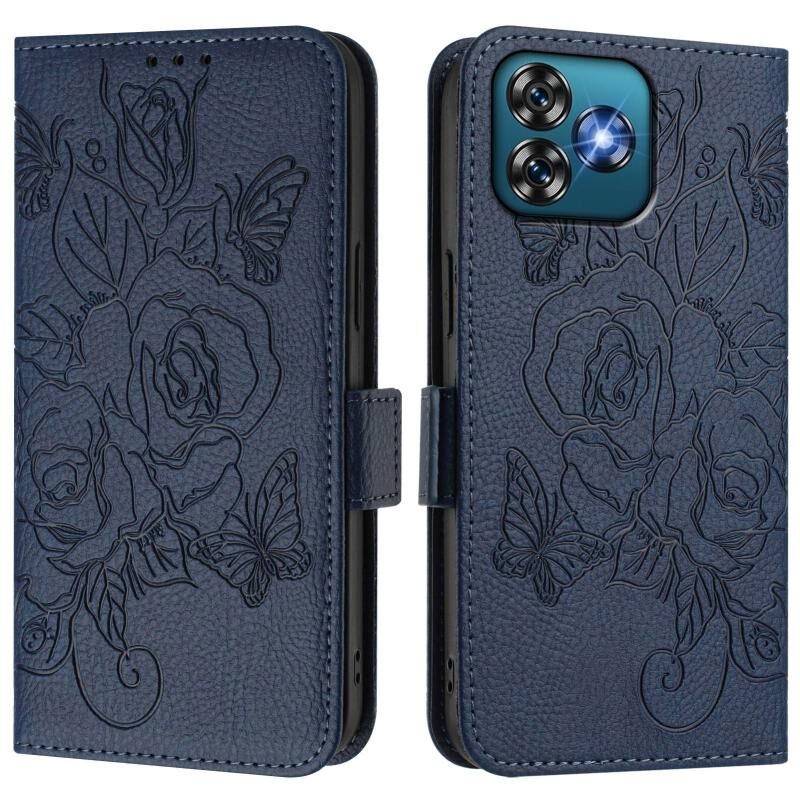Θήκη τηλεφώνου δερμάτινη με ανάγλυφο σχέδιο τριαντάφυλλου για Oukitel C53, με προστασία RFID κατά της κλοπής (Σκούρο μπλε)