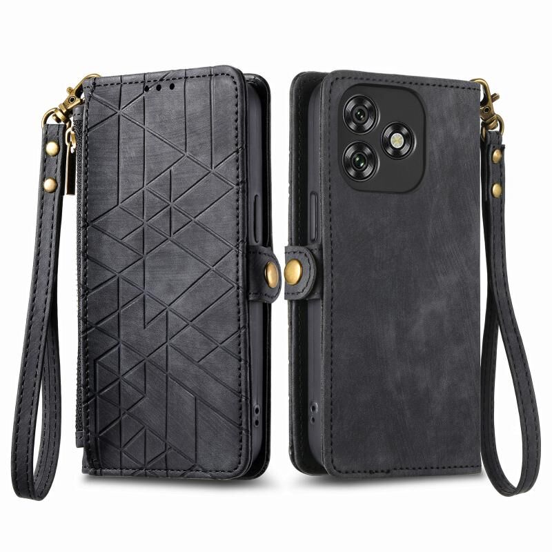 Για Oukitel C53 γεωμετρική φερμουάρ πορτοφόλι πλευρά πόρπη δερμάτινη θήκη τηλεφώνου (μαύρο)