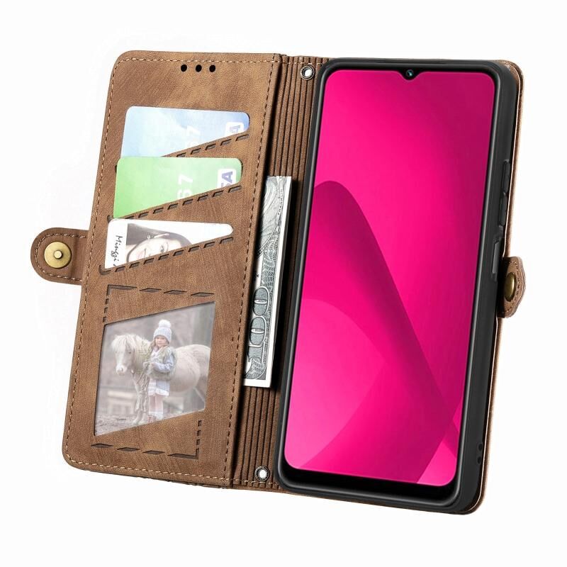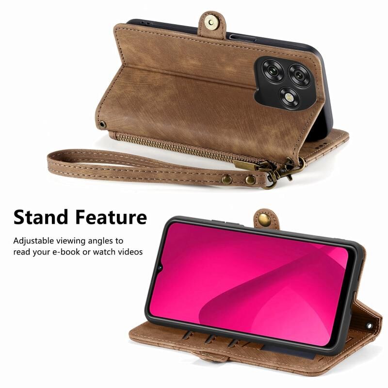 Για Oukitel C53 Γεωμετρικό φερμουάρ πορτοφόλι πλευρά πόρπη δερμάτινη θήκη τηλεφώνου (καφέ)