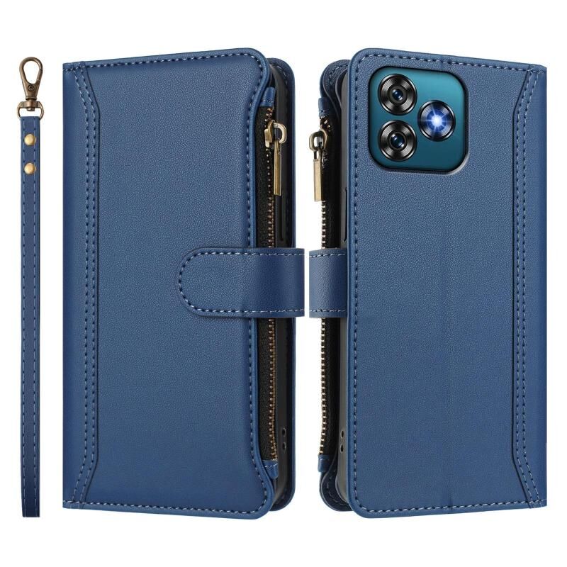 For Oukitel C53 Magnetic Closure 9 Card Slots Zipper Leather Case with Hand Strap(Dark Blue)
