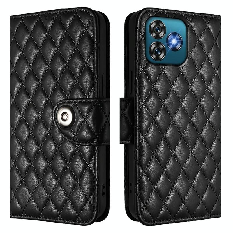 Για Oukitel C53 Ρομβική υφή Flip δερμάτινη θήκη τηλεφώνου με κορδόνι (μαύρο)