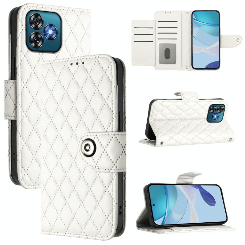 Για το Oukitel C53 Rhombic Texture Flip δερμάτινη θήκη τηλεφώνου με κορδόνι (λευκό)