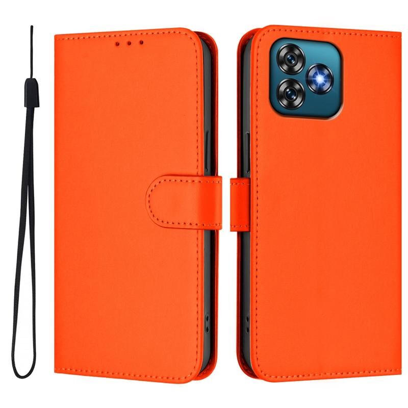 For Oukitel C53 Skin Feel Solid Color Leather Phone Case with Lanyard(Orange)