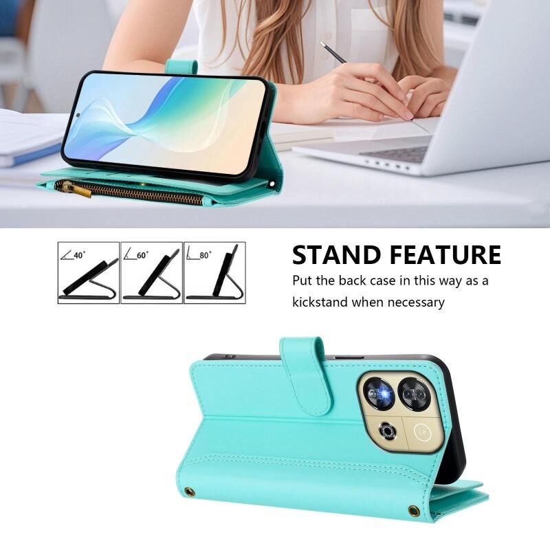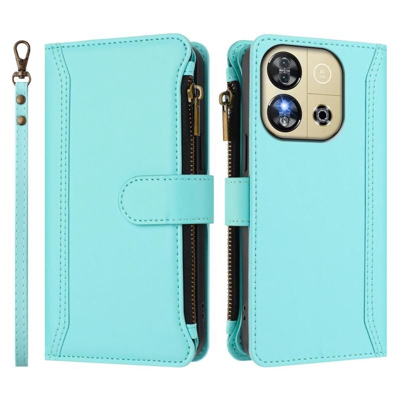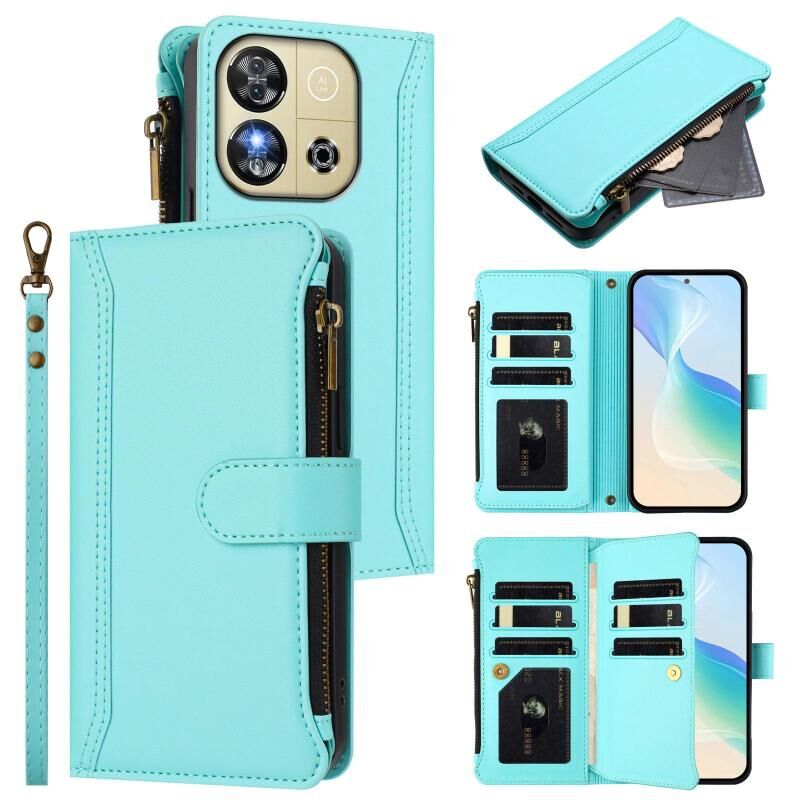 For Oukitel C57s / C57 Pro / C57 Magnetic Closure 9 Card Slots Zipper Leather Case with Hand Strap(Mint Green)