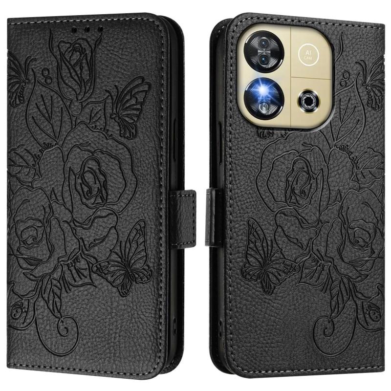 For Oukitel C57s Embossed Rose RFID Anti-theft Leather Phone Case(Black)