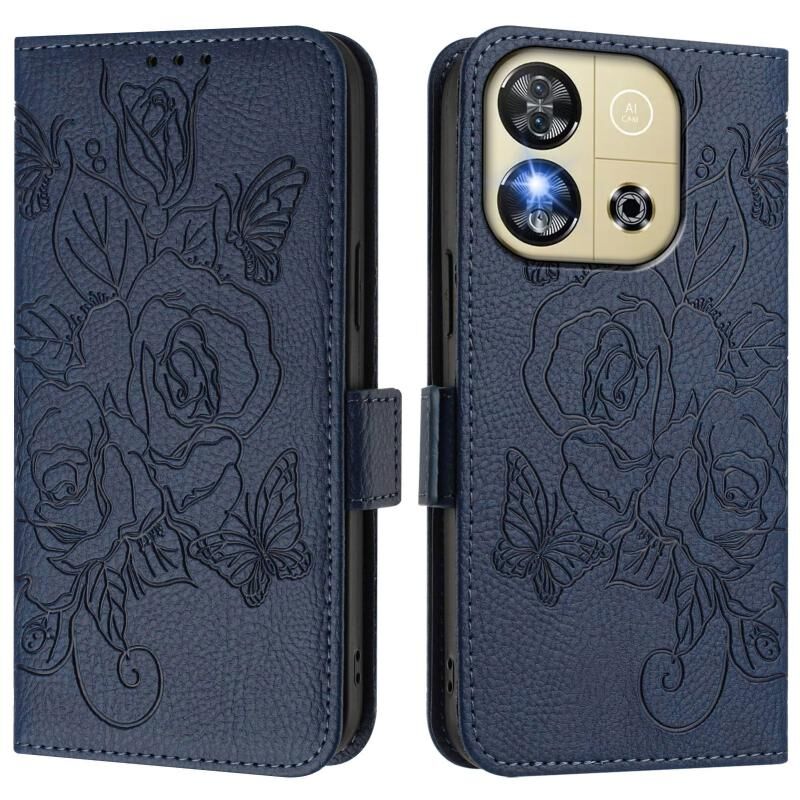 For Oukitel C57s Embossed Rose RFID Anti-theft Leather Phone Case(Dark Blue)