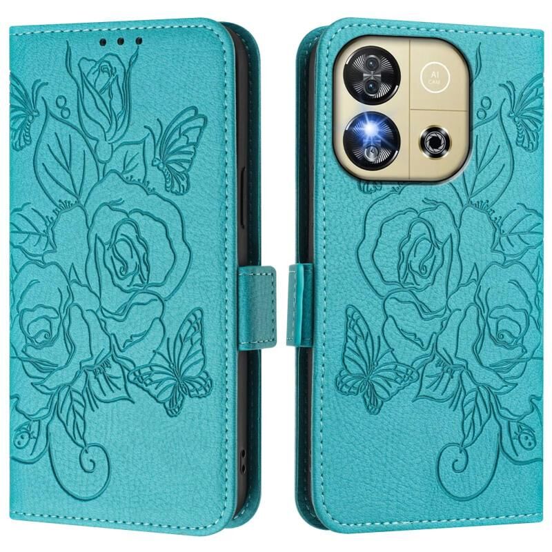 For Oukitel C57s Embossed Rose RFID Anti-theft Leather Phone Case(Light Blue)