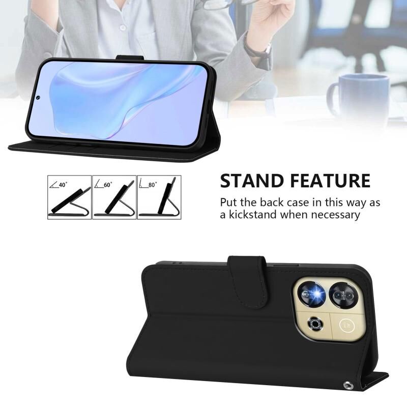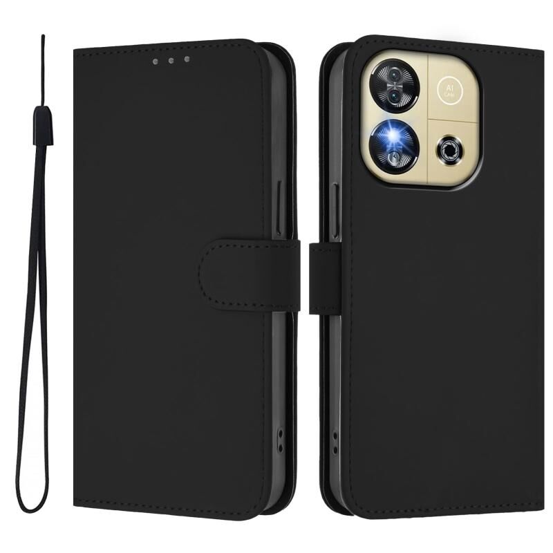 For Oukitel C57s Skin Feel Solid Color Leather Phone Case with Lanyard(Black)