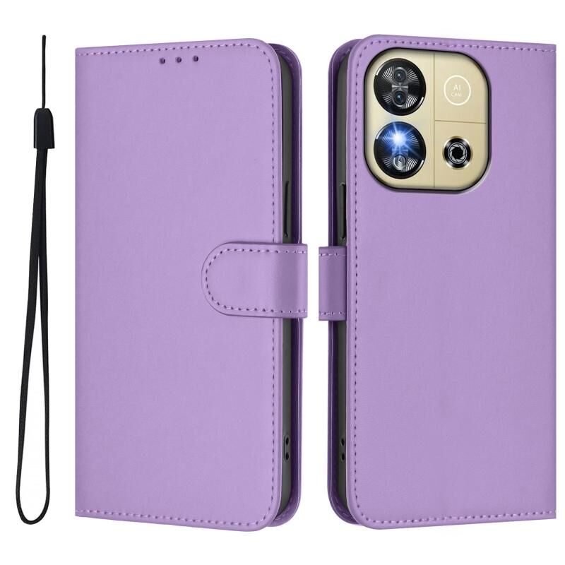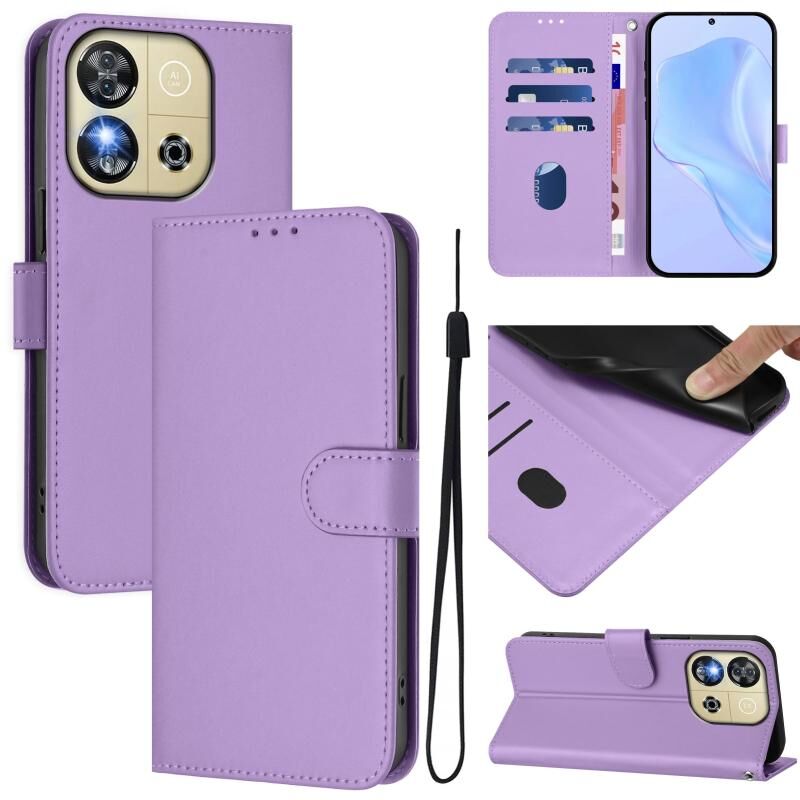 For Oukitel C57s Skin Feel Solid Color Leather Phone Case with Lanyard(Lavender Purple)
