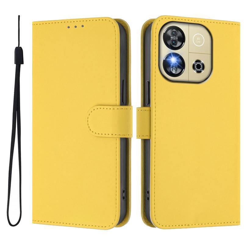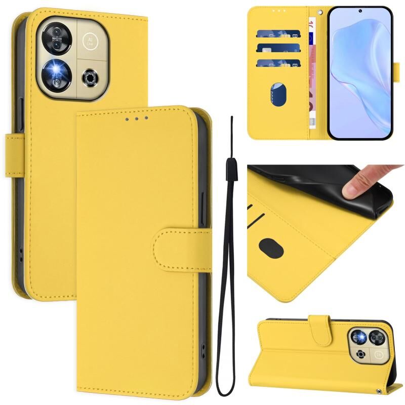 For Oukitel C57s Skin Feel Solid Color Leather Phone Case with Lanyard(Lemon Yellow)