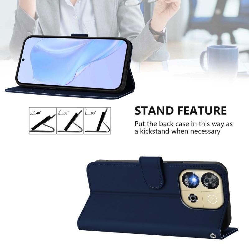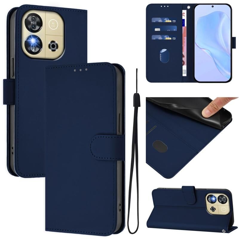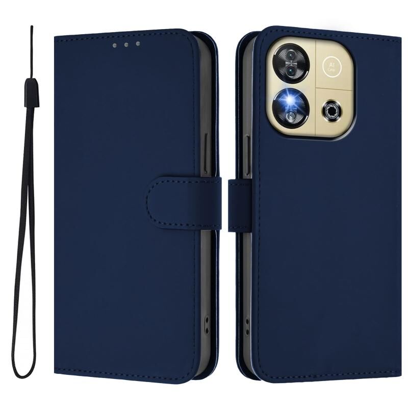 For Oukitel C57s Skin Feel Solid Color Leather Phone Case with Lanyard(Navy Blue)