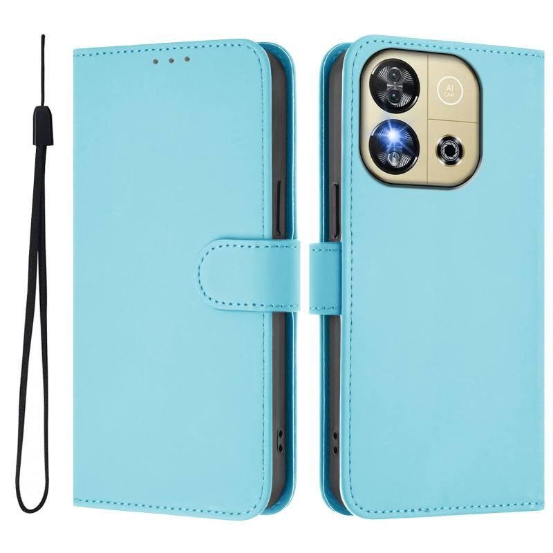 For Oukitel C57s Skin Feel Solid Color Leather Phone Case with Lanyard(Sky Blue)
