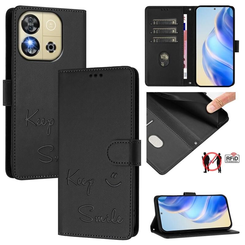 Για Oukitel C57s Χαμόγελο ανάγλυφο RFID δερμάτινη θήκη τηλεφώνου (Μαύρο)