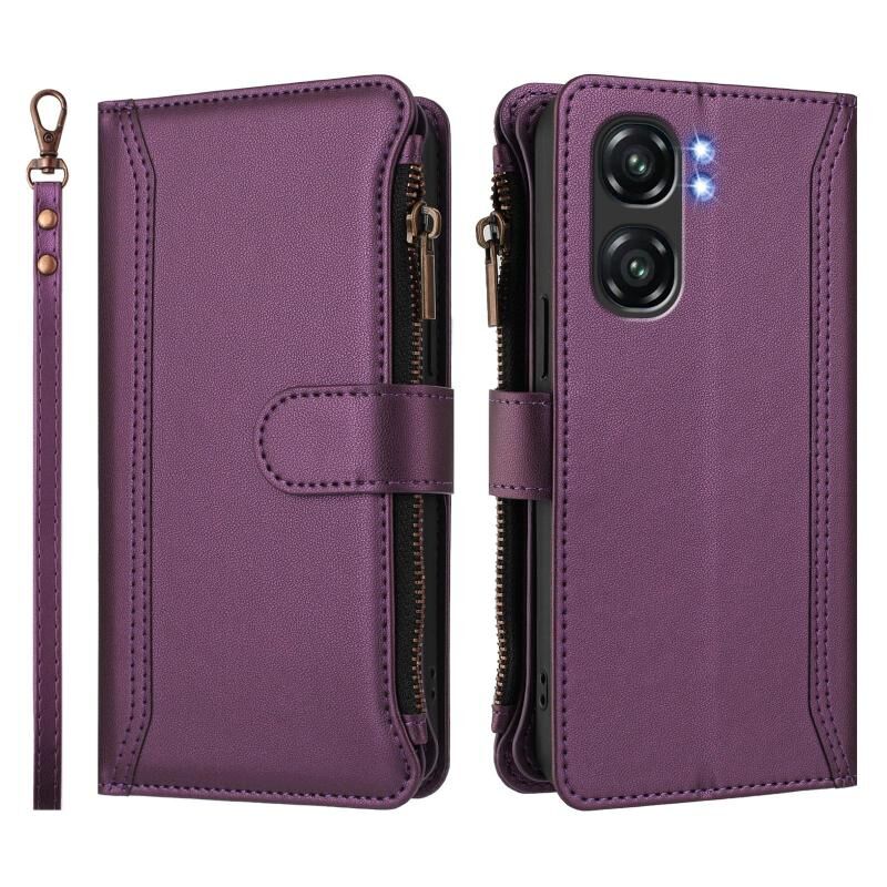 For Oukitel C58 / C58 Pro Magnetic Closure 9 Card Slots Zipper Leather Case with Hand Strap(Purple)
