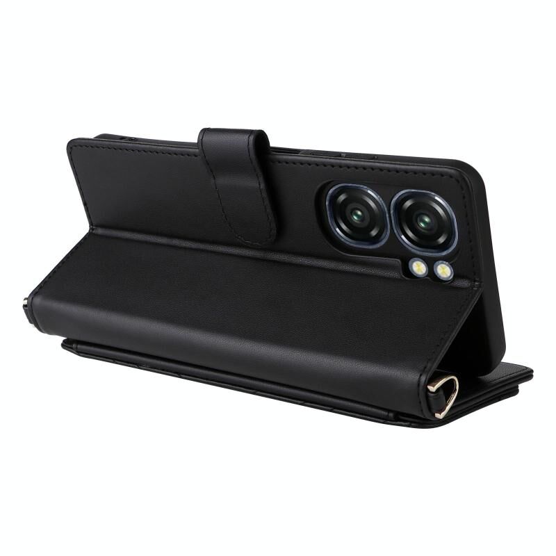 Θήκη τηλεφώνου από δέρμα με 6 υποδοχές καρτών και λουρί καρπού για Oukitel C58 / C58 Pro (Ροζ)