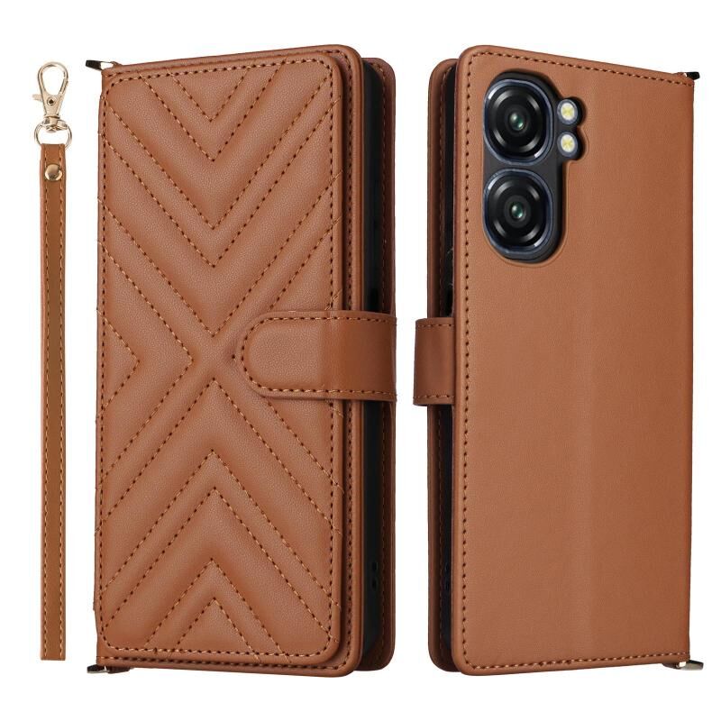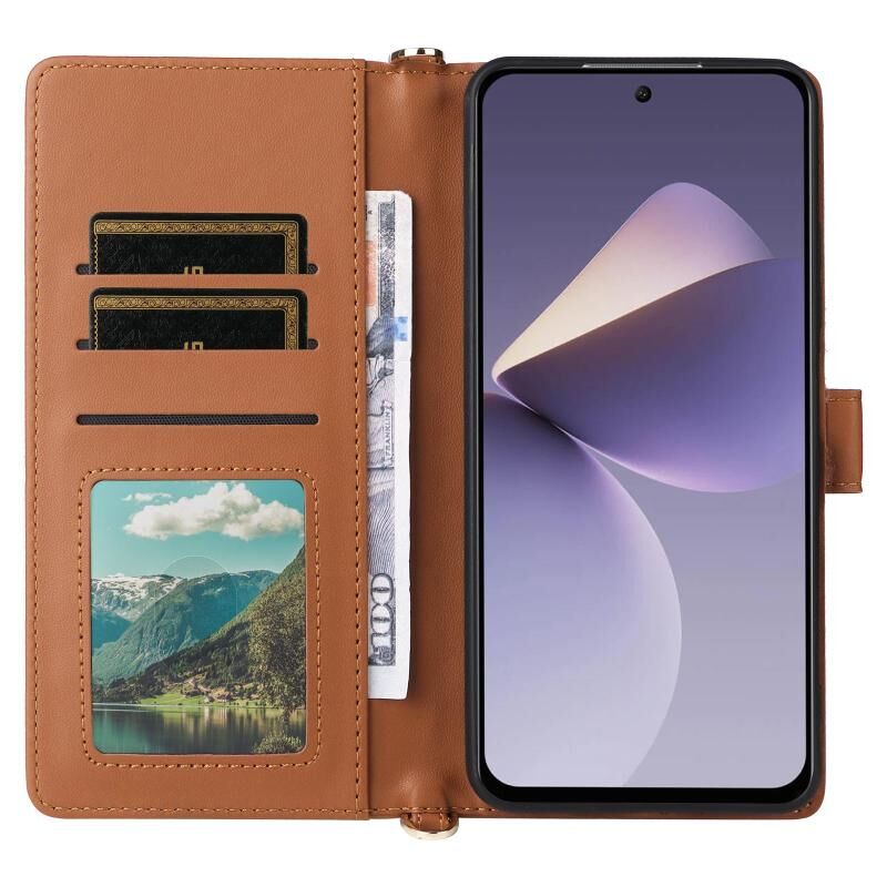 Θήκη τηλεφώνου από δέρμα με 6 υποδοχές καρτών και λουρί καρπού για Oukitel C58 / C58 Pro (Ροζ)