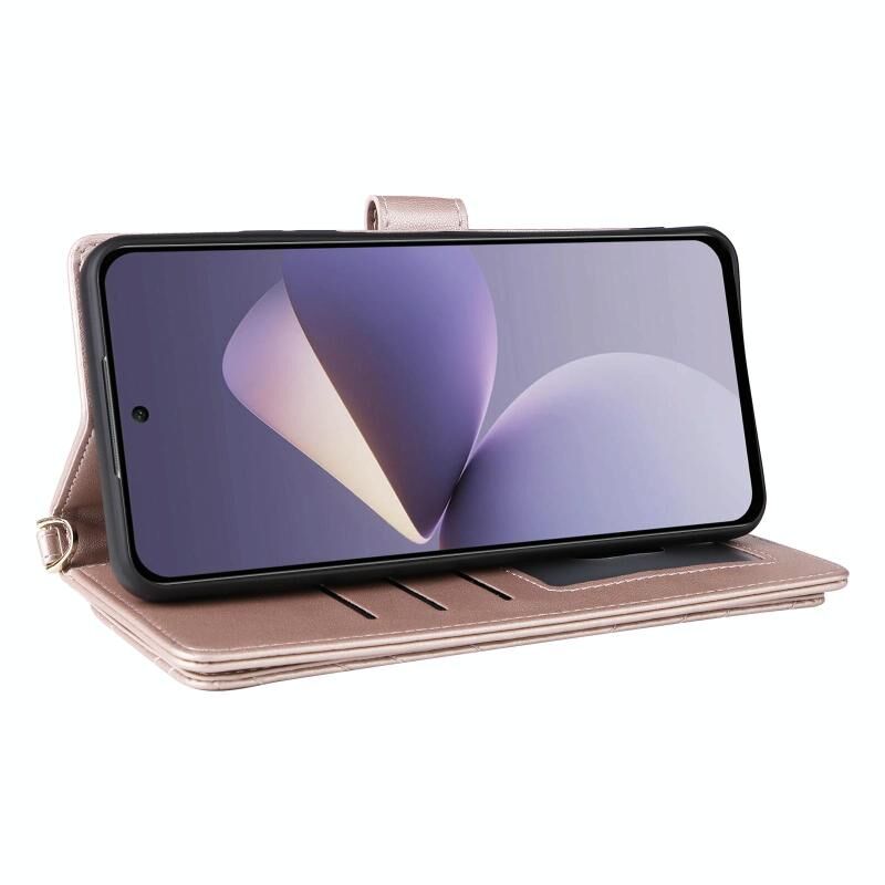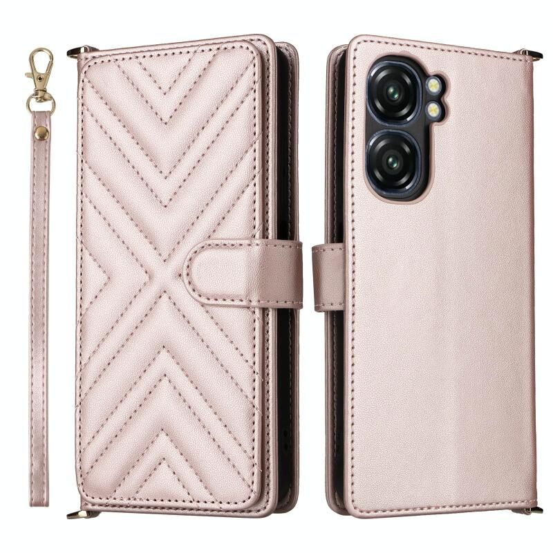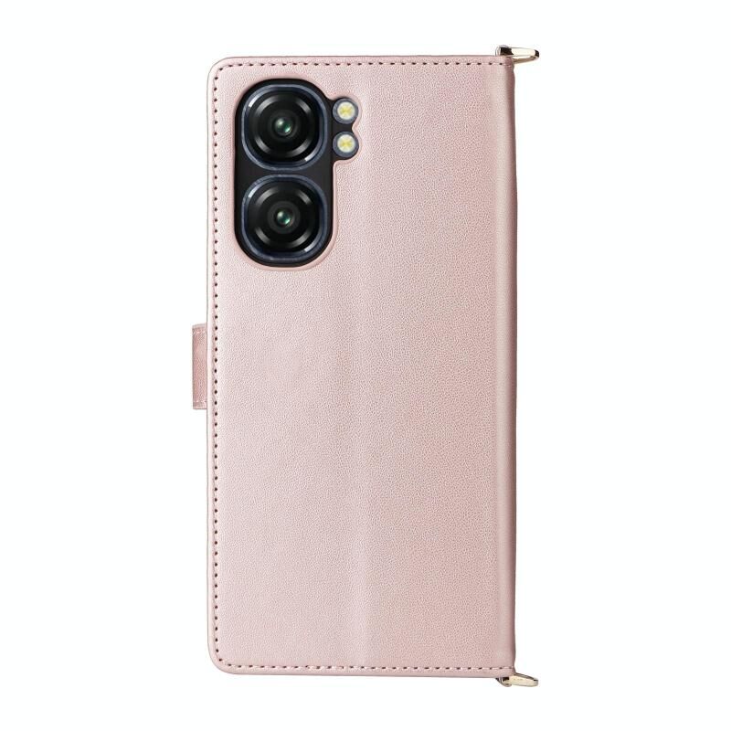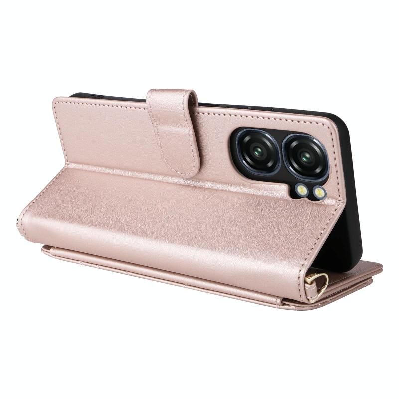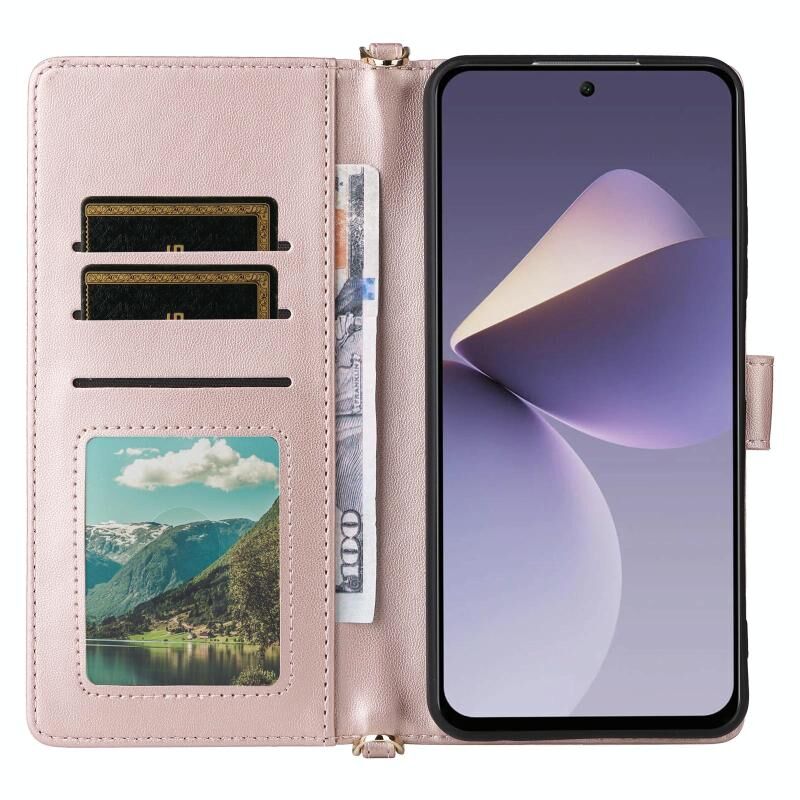 Θήκη τηλεφώνου από δέρμα με 6 υποδοχές καρτών και λουρί καρπού για Oukitel C58 / C58 Pro (Ροζ)