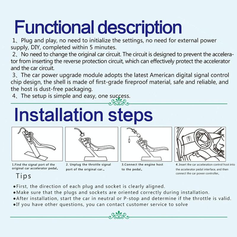 1. Ο ηλεκτρονικός ελεγκτής γκαζιού είναι ένας ελεγκτής απόκρισης γκαζιού. Εξαλείφει τις καθυστερήσεις απόκρισης στο ηλεκτρονικό πεντάλ γκαζιού σας. Αποτελεσματικά, επιτρέπει στον κινητήρα σας να ανταποκρίνεται γρηγορότερα. Ως αποτέλεσμα, το αυτοκίνητό σας μπορεί να επιταχύνει γρηγορότερα.