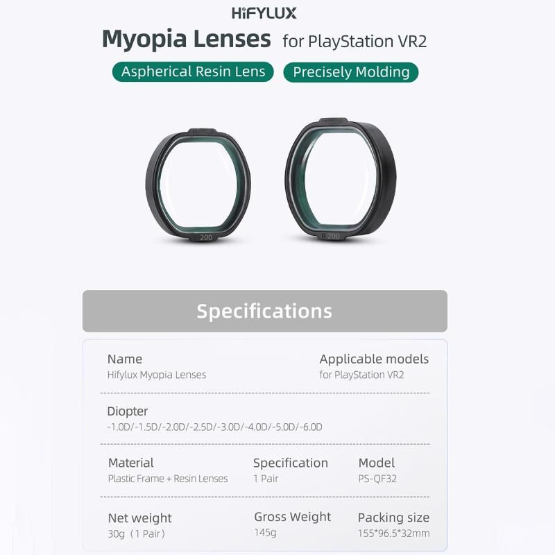 Γυαλιά Μυωπίας Hifylux για PlayStation VR2, Ασφαιρικός Φακός Ρητίνης (-4.0D) (Sunnylife)