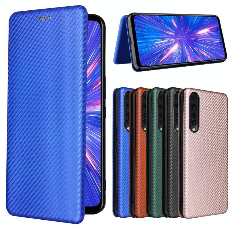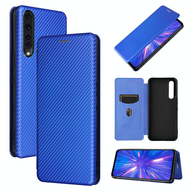 For Rakuten Big Carbon Fiber Texture Horizontal Flip TPU + PC + PU Leather Case with Card Slot(Blue)