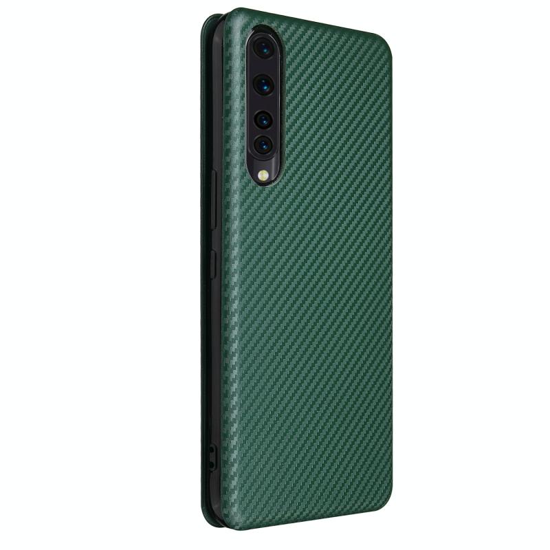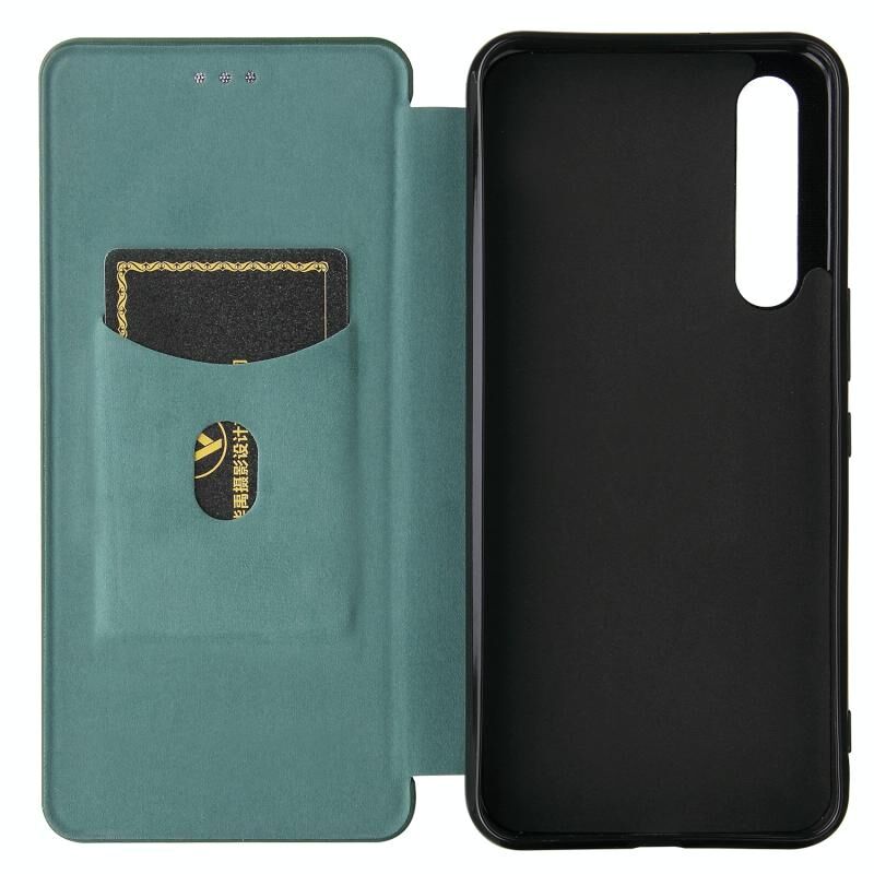 For Rakuten Big Carbon Fiber Texture Horizontal Flip TPU + PC + PU Leather Case with Card Slot(Green)
