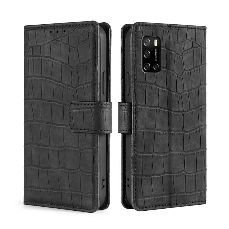 Θήκη τηλεφώνου δερμάτινη με μαγνητικό κούμπωμα, υφή κροκόδειλου, για Rakuten Big S (Μαύρο)