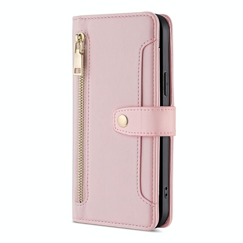 Για Rakuten χέρι 4G Πρόβατα Υφή Cross-body φερμουάρ πορτοφόλι δερμάτινη θήκη τηλεφώνου (ροζ)