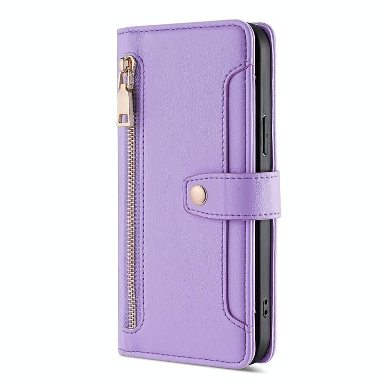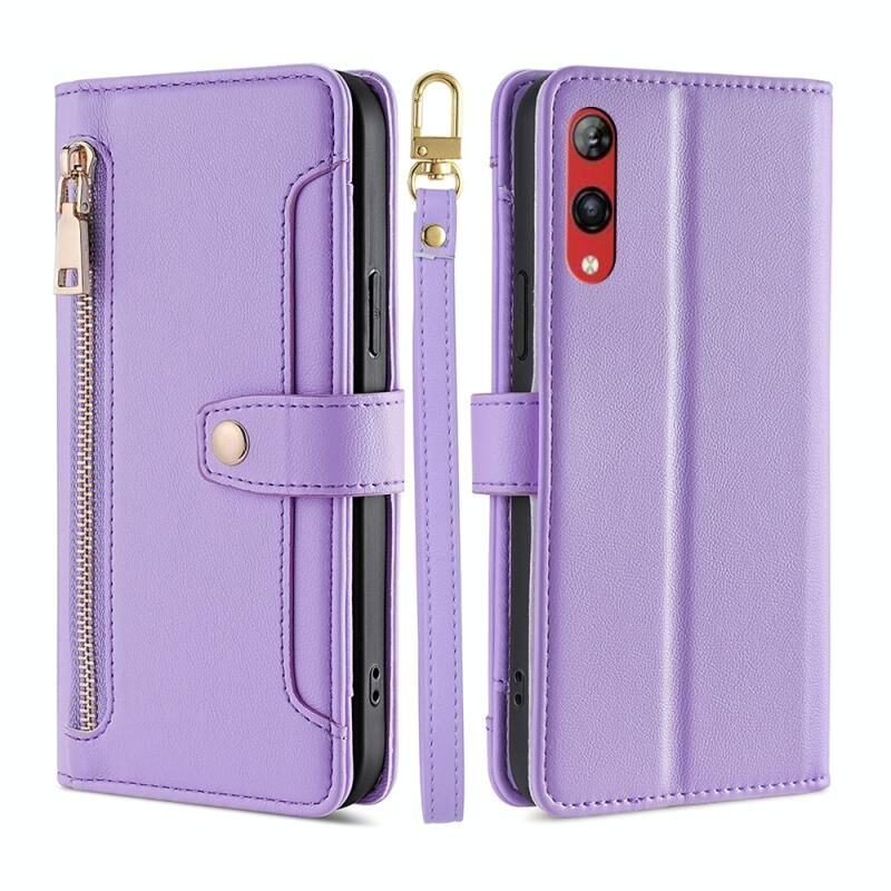 Για Rakuten χέρι 4G Πρόβατα Υφή Cross-body φερμουάρ πορτοφόλι δερμάτινη θήκη τηλεφώνου (μωβ)