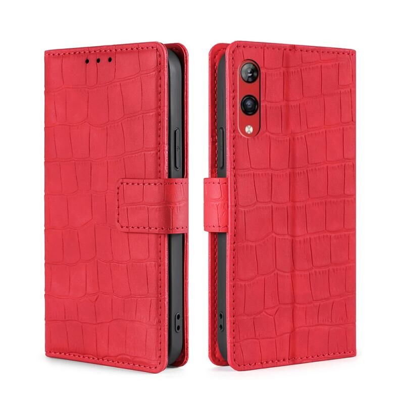 Θήκη τηλεφώνου δερμάτινη με μαγνητικό κούμπωμα, υφή κροκόδειλου για Rakuten Hand 4G (Μαύρο)