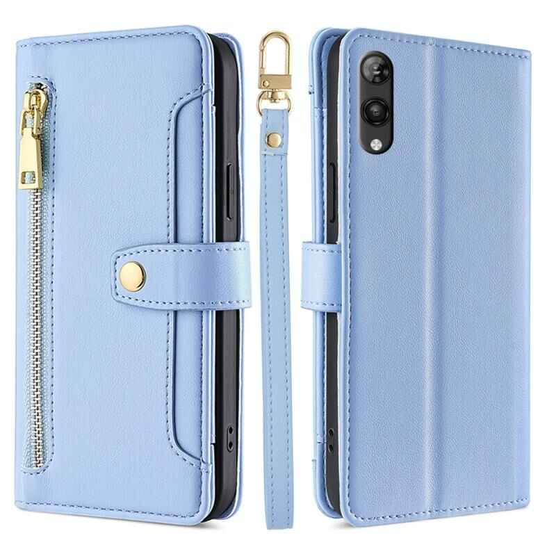 Για Rakuten χέρι 5G Πρόβατα υφή Cross-body φερμουάρ πορτοφόλι δερμάτινη θήκη τηλεφώνου (μπλε)