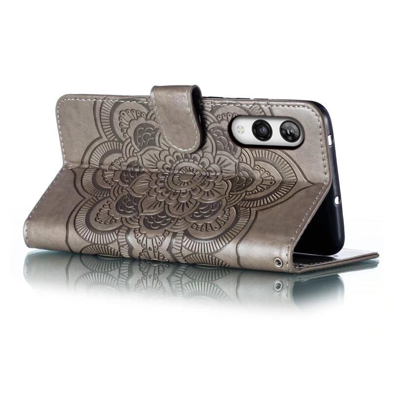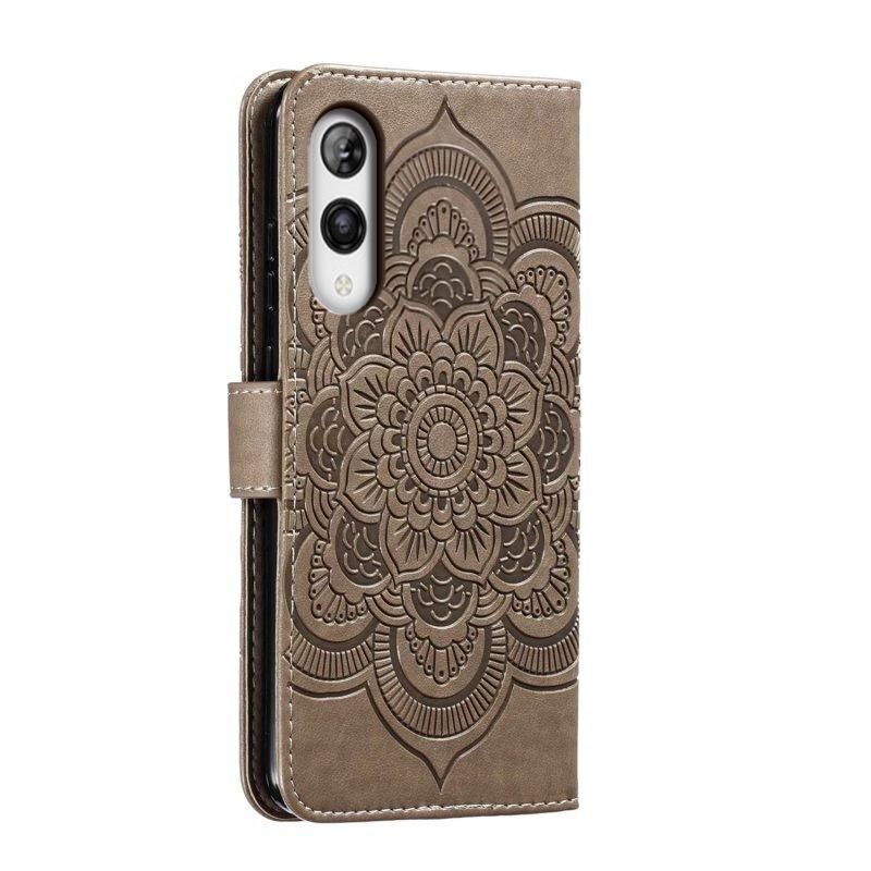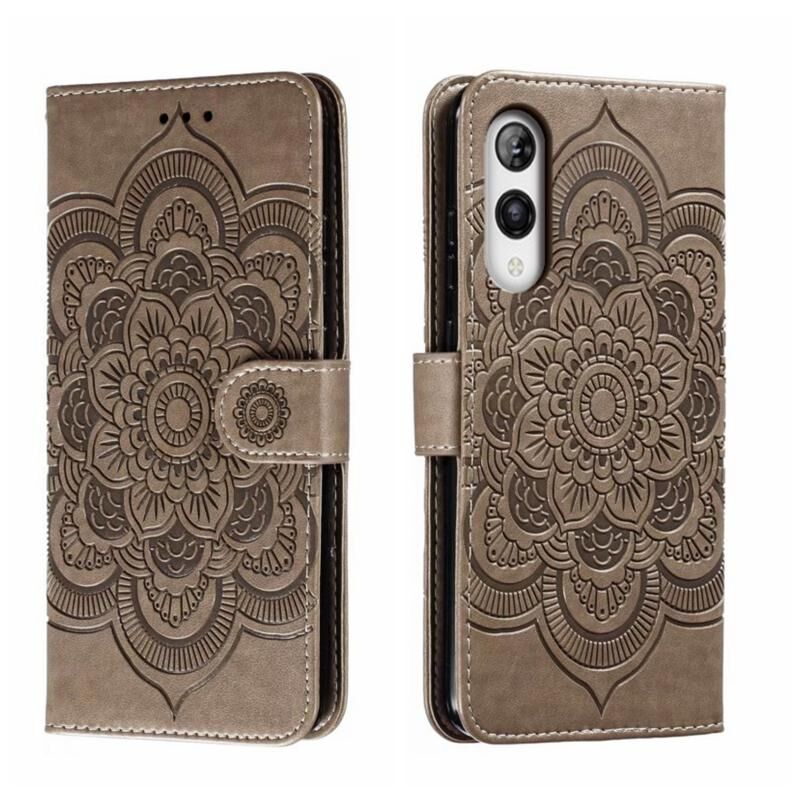 Για Rakuten Hand 5G Sun Mandala ανάγλυφο μοτίβο τηλέφωνο δερμάτινη θήκη (γκρι)