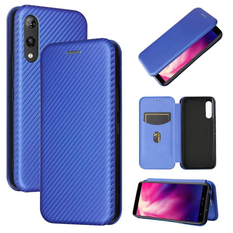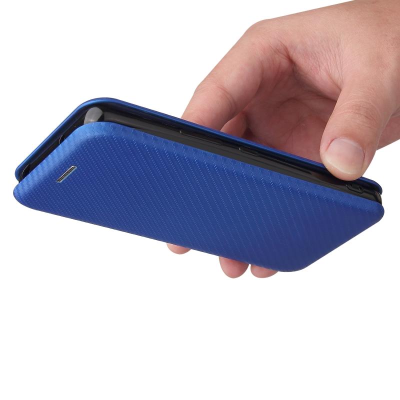 For Rakuten Hand Carbon Fiber Texture Horizontal Flip TPU + PC + PU Leather Case with Card Slot(Blue)