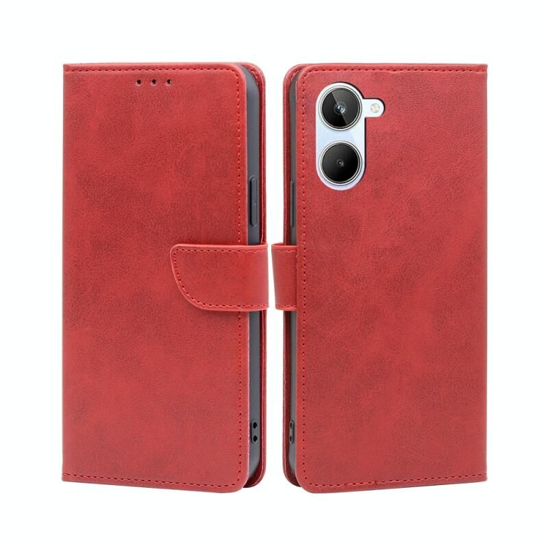 Για Realme 10 4G Calf Texture Πόρπη Flip υπόθεση τηλεφώνου δέρμα (κόκκινο)