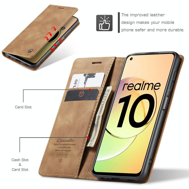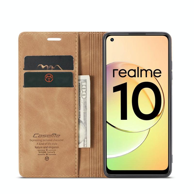 Για Realme 10 4G CaseMe 013 Πολυλειτουργική Οριζόντια Δερμάτινη Θήκη Τηλεφώνου (Μαύρο) (Καφέ)