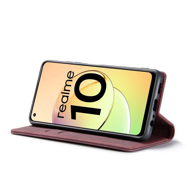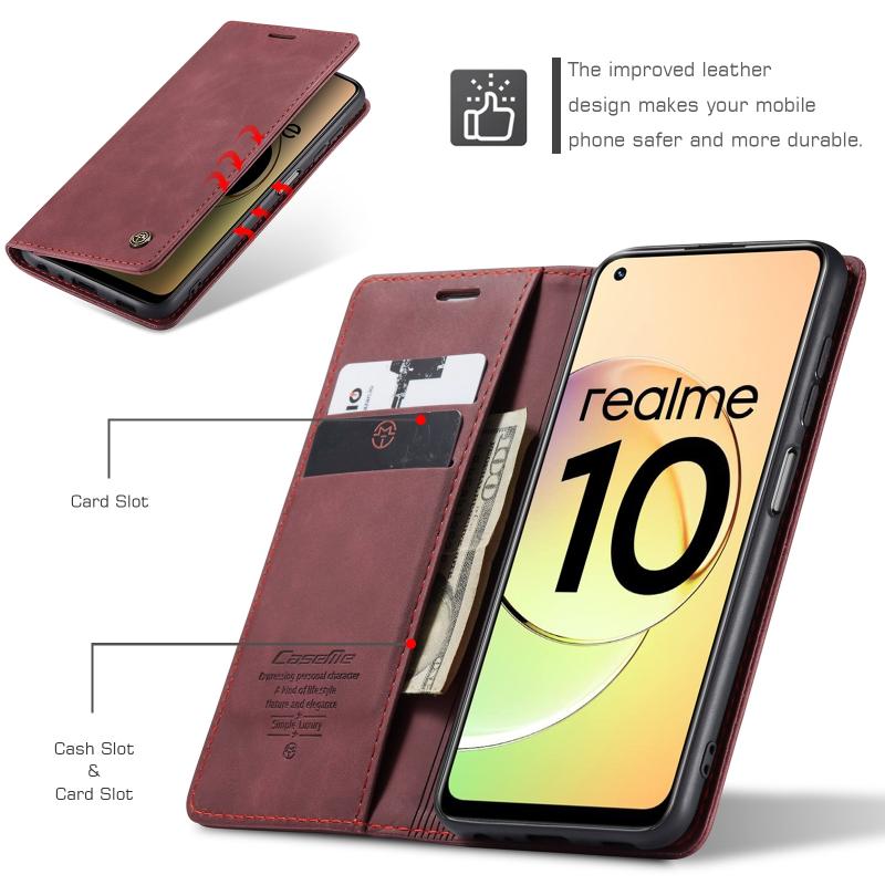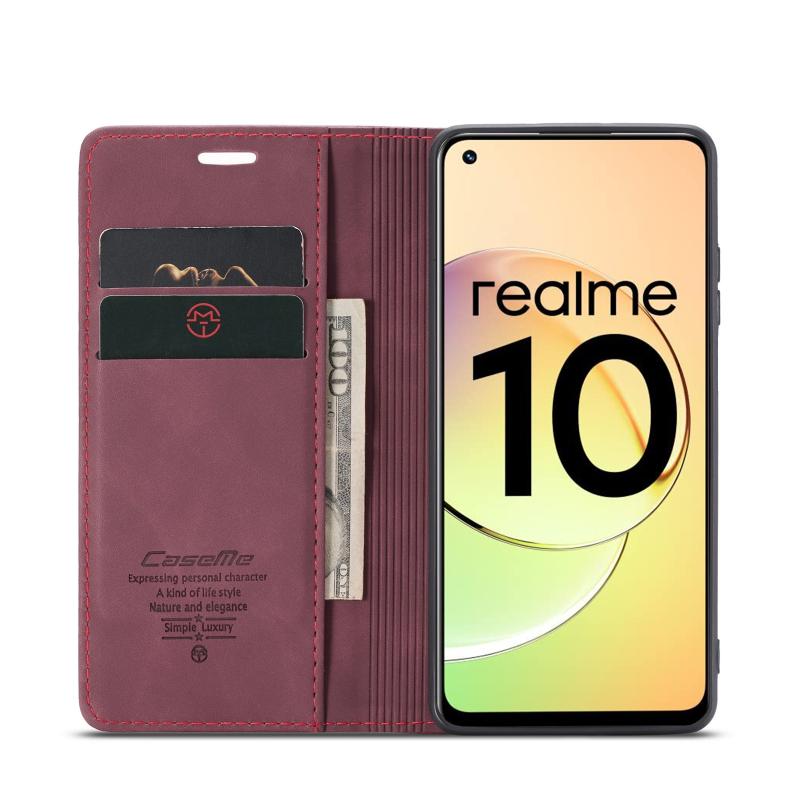 Για Realme 10 4G CaseMe 013 Πολυλειτουργική Οριζόντια Δερμάτινη Θήκη Τηλεφώνου (Μαύρο) (Κρασοκόκκινο)