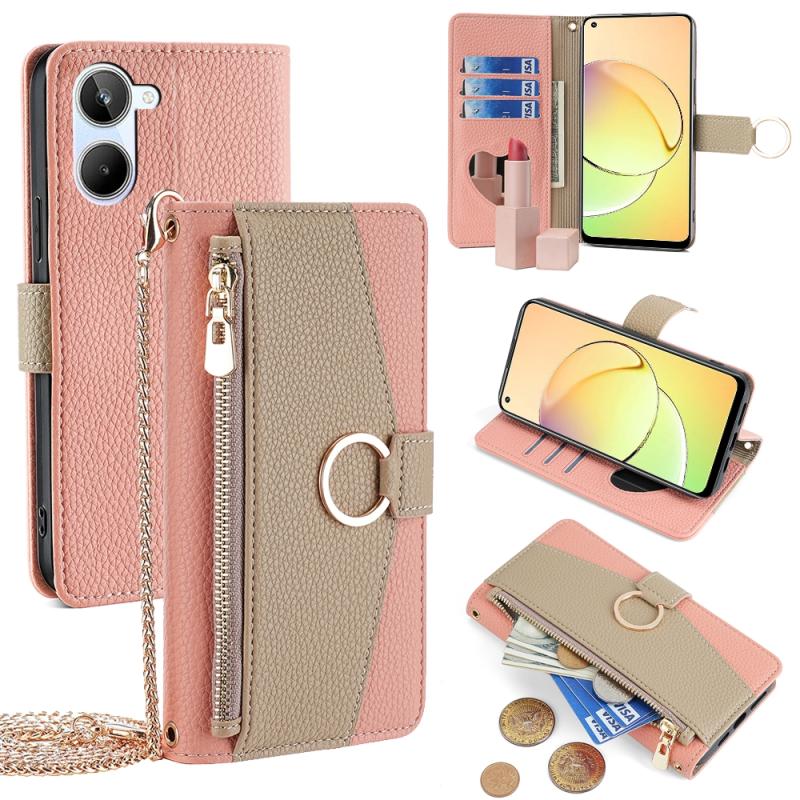 For Realme 10 4G Crossbody Litchi Texture Leather Phone Case(Pink)