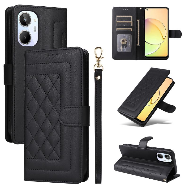 For Realme 10 4G Diamond Lattice Leather Flip Phone Case(Black)