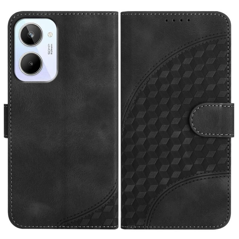 For Realme 10 4G Elephant Head Embossed Phone Leather Case with Lanyard(Black)