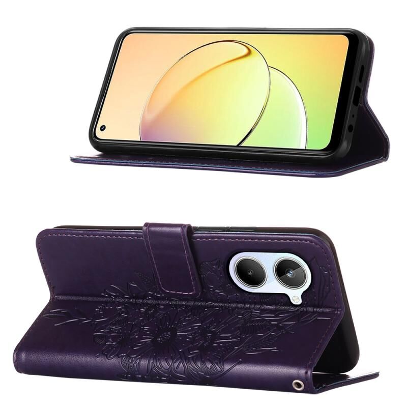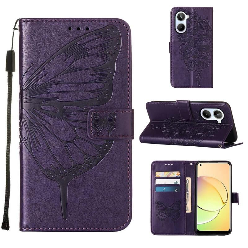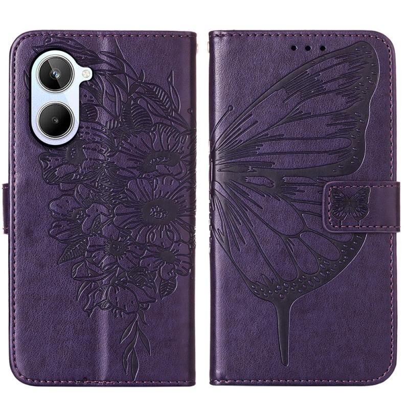 Θήκη τηλεφώνου δερμάτινη με ανάγλυφο σχέδιο πεταλούδας για Realme 10 4G (Μαύρο)