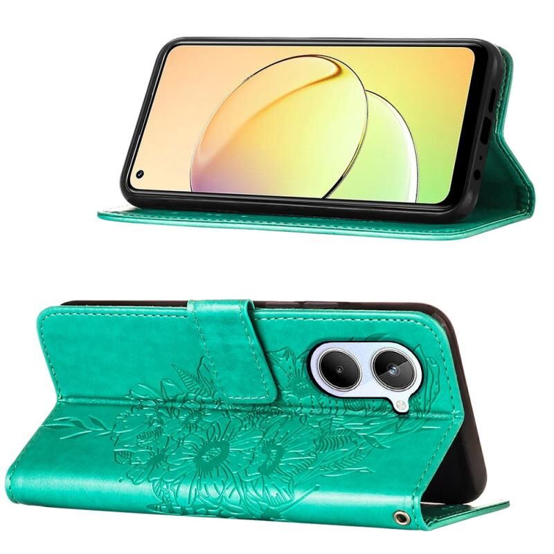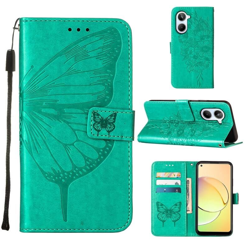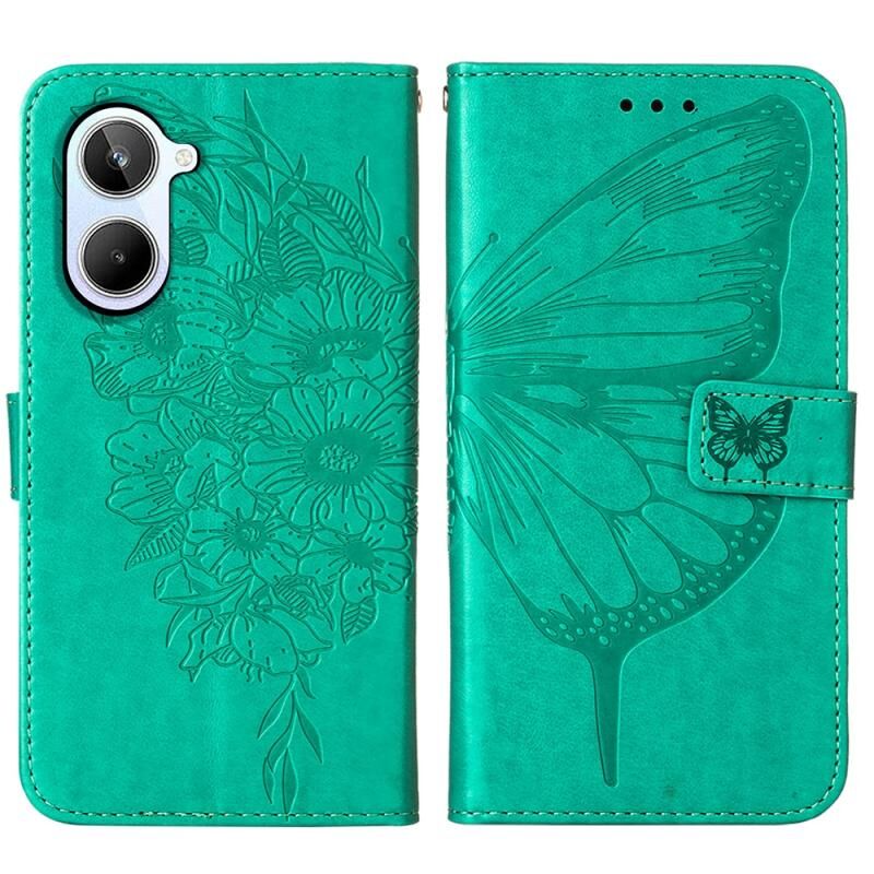 Θήκη τηλεφώνου δερμάτινη με ανάγλυφο σχέδιο πεταλούδας για Realme 10 4G (Μαύρο)