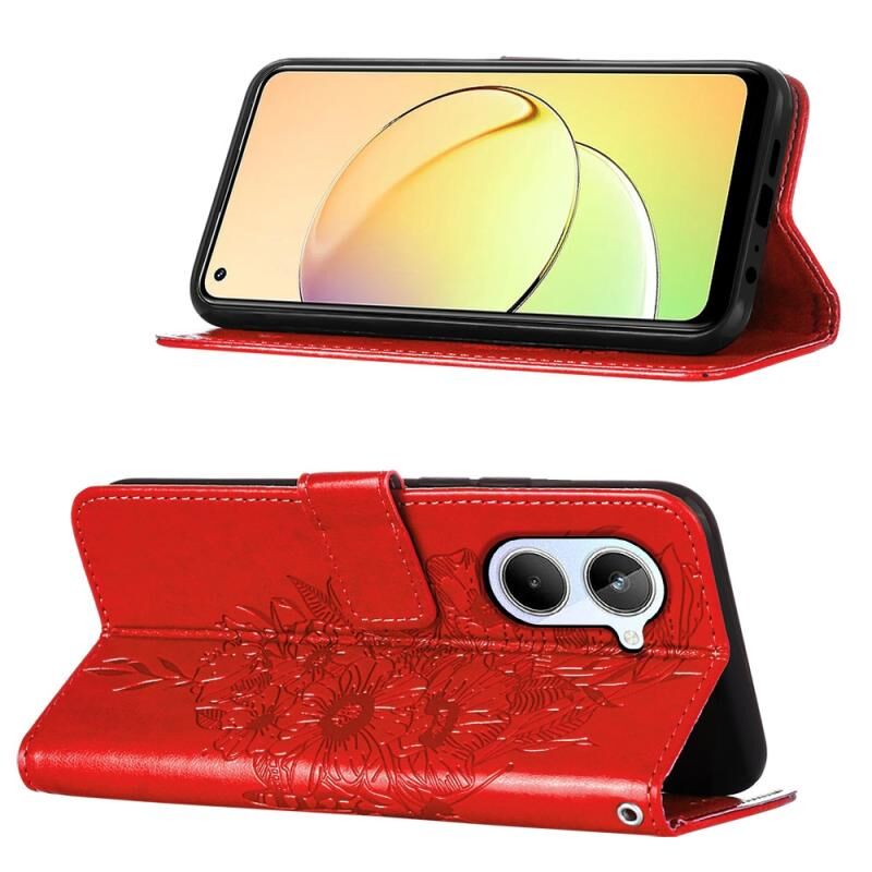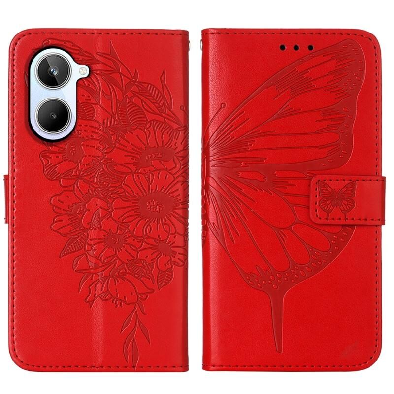 Θήκη τηλεφώνου δερμάτινη με ανάγλυφο σχέδιο πεταλούδας για Realme 10 4G (Μαύρο)