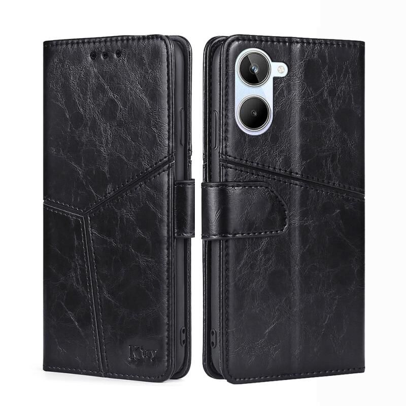 Για Realme 10 4G γεωμετρική ραφή οριζόντια Flip δερμάτινη θήκη τηλεφώνου (μαύρο)